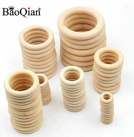 14 aros de madera natural .círculo manualidades para hacer joyas bebé dentición anillo de madera niños juguete adornos Accesorios. Marca Baoqian.