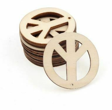 Pequenas piezas con el signo de la paz , hechas de madera en forma circular. Artesanía ,tarjeta ,decoración de colección de recortes adorno DIY. Wood Handicrafts Decoration Store.